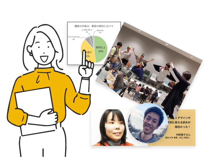 受講生も、教育、行政、アート、ビジネス、製造業、製薬業、IT、コンサルタントなど、異分野の方が集まる講座です。